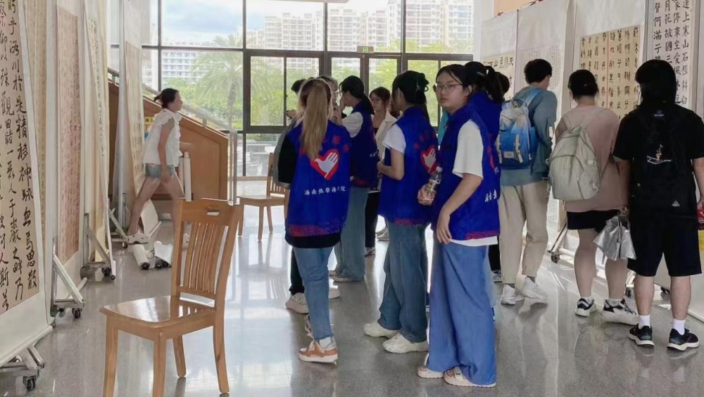 在布置现场工作中,志愿者们领略到了汉字不一样的魅力。从甲骨文到行书,汉字的演变各具特色,而汉字是世界上唯一没有间断过的文字形式,不由得让人们再一次感叹中华民族的伟大与独特。