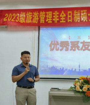 2019级优秀毕业研究生代表高娟,以自身就业经历向大家展示旅游行业就业的美好前景,诠释刻苦学习的意义,为大家加油鼓劲。
