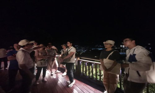 天涯海角景区实践教学活动结束之后,师生们乘车前往鹿回头景区开展下一阶段实践教学活动,乘着星光到达鹿回头景区脚下。在景区行政总监张嘉宝的带领下参观了鹿雕、一见钟情石、海哭不烂石等著名景点,聆听美丽动人的爱情故事,了解景区发展历史。